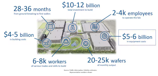 據Deloitte估算,建造一座晶圓廠的成本約為100億美元起,另外還有50億美元的機械和設備成本。在經歷地緣政治危機、芯片荒后,半導體產業從全球合作,改為追求自給自足,自2021年起,全球IC制造企業開啟擴產之路,并于2023年第一季度達到資本支出的頂峰。